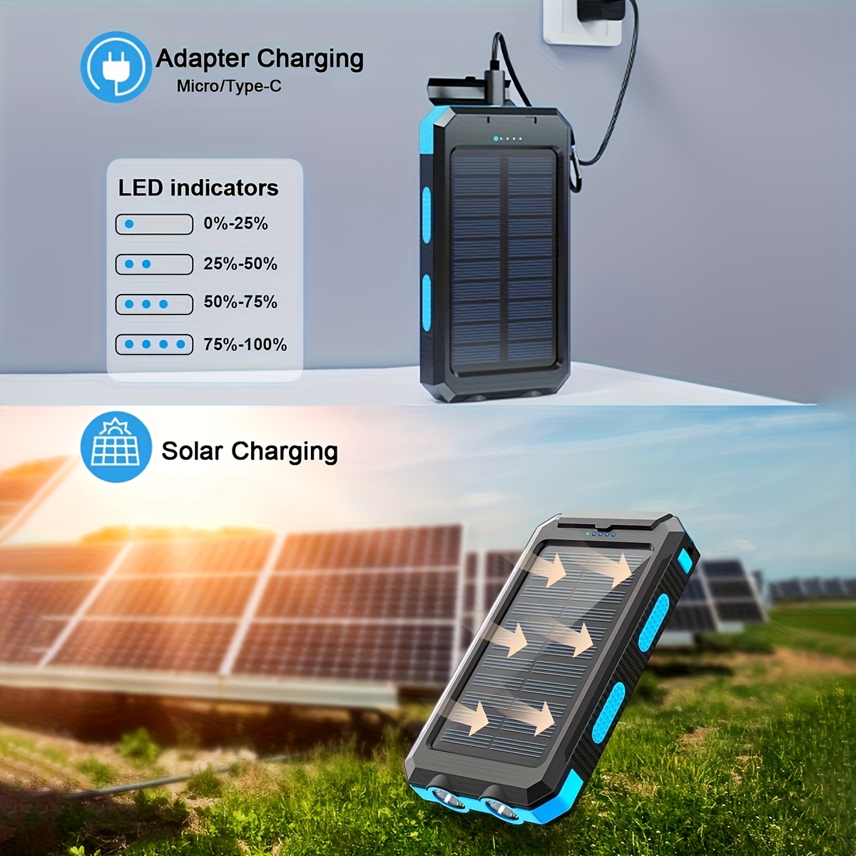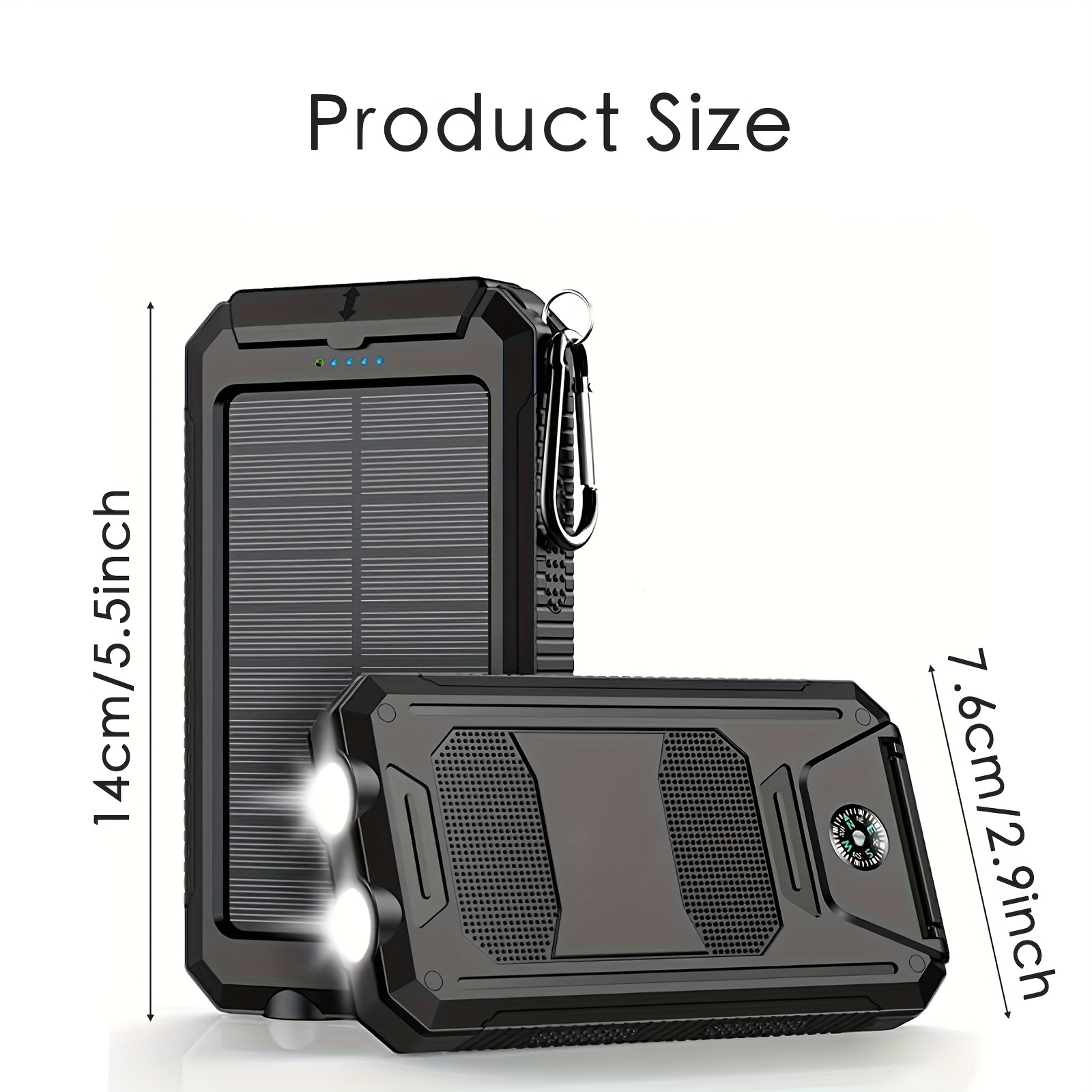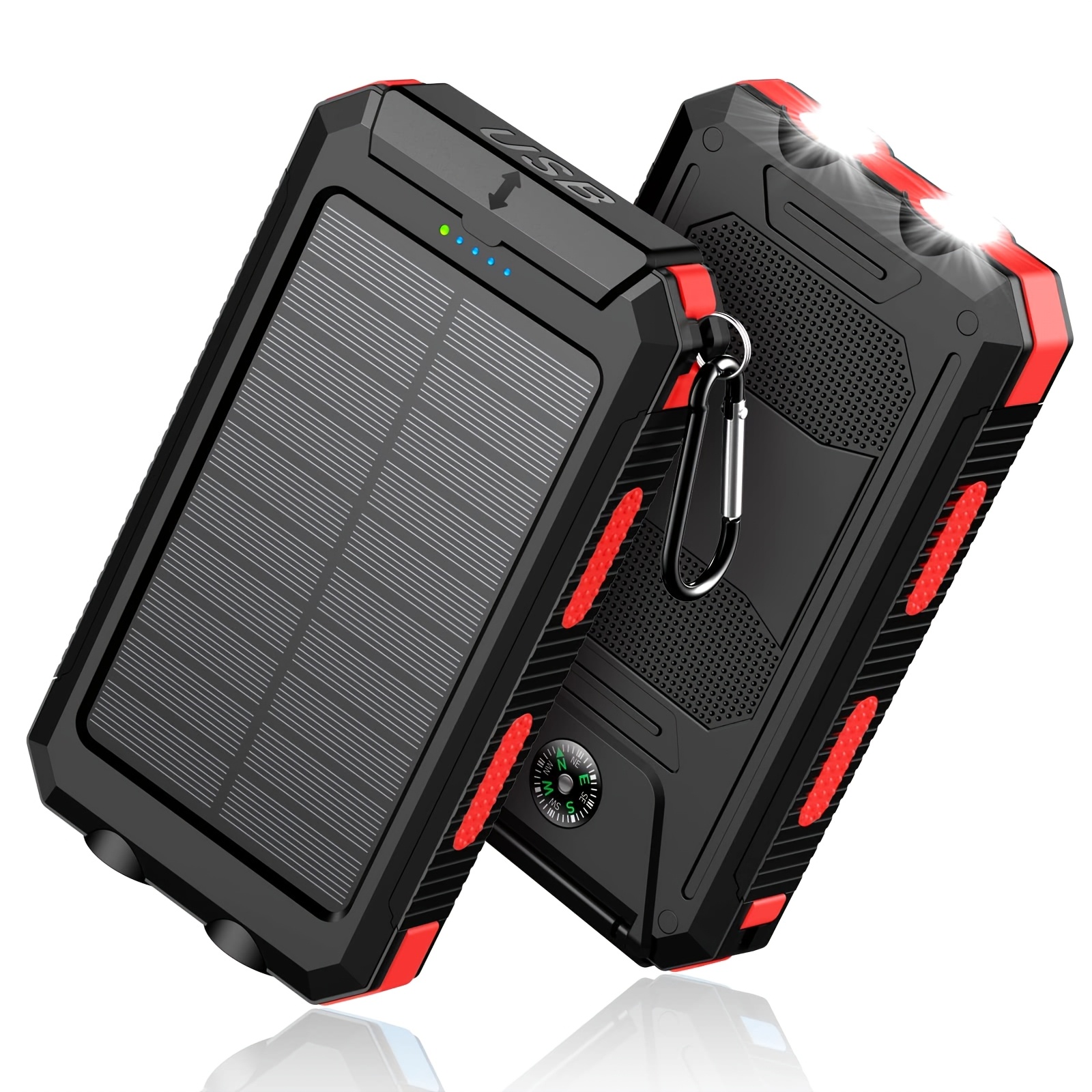 1 Unidad, Batería Externa Solar de Muy Alta Capacidad de 8000Mah – Baterías Externas Portátiles con Cargador Solar, Linternas LED Duales y una Puerto de Salida USB Adecuado para iOS, Android, Camping al Aire Libre y Requisitos de Energía de Emergencia