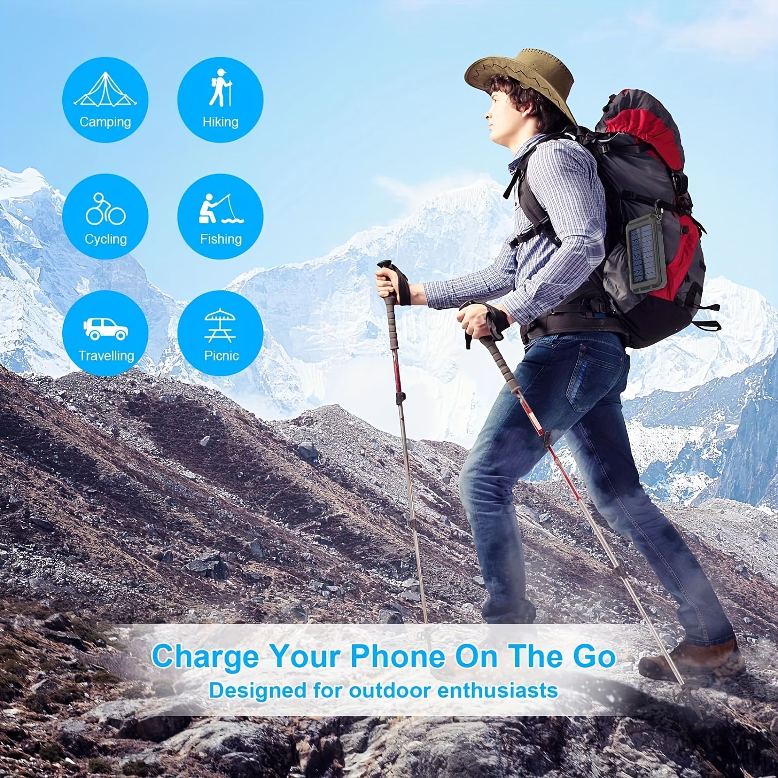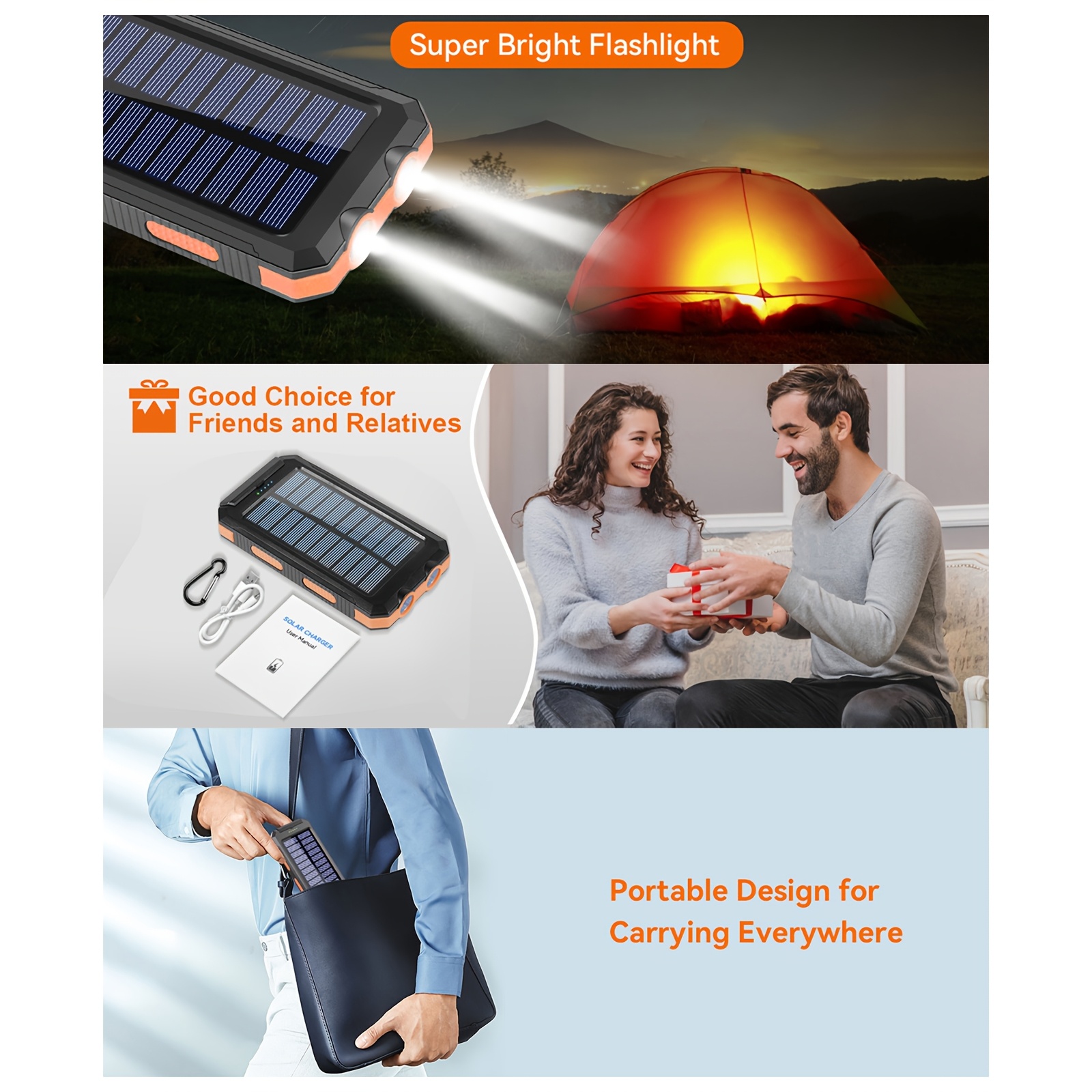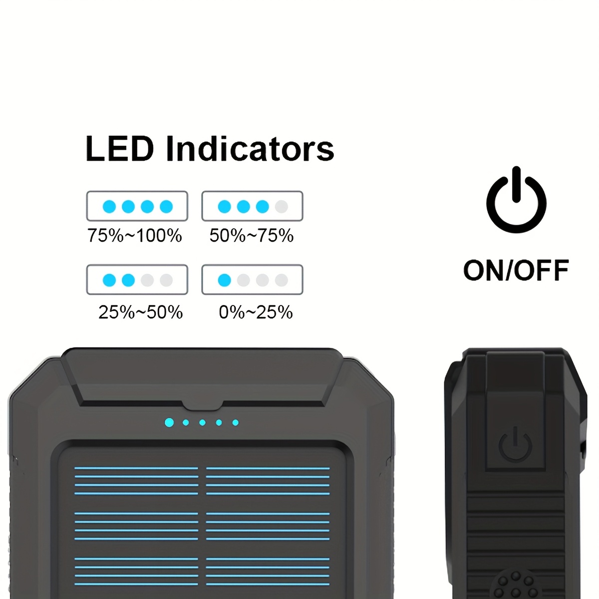 1 Unidad, Batería Externa Solar de Muy Alta Capacidad de 8000Mah – Baterías Externas Portátiles con Cargador Solar, Linternas LED Duales y una Puerto de Salida USB Adecuado para iOS, Android, Camping al Aire Libre y Requisitos de Energía de Emergencia