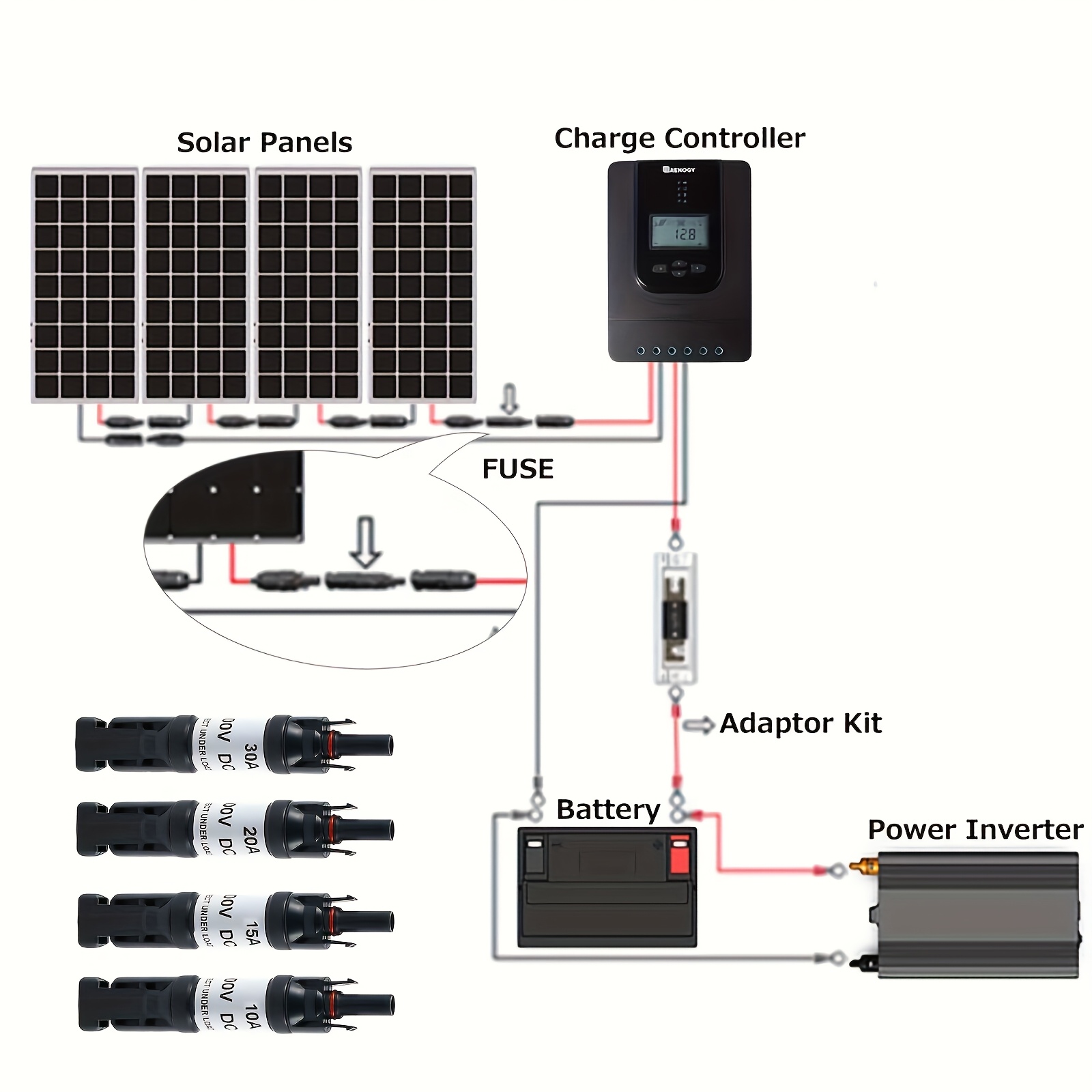 3 piezas de conectores de diodo de panel solar de 10A, 15A, 20A y 30A – Tipo MC4/MC4