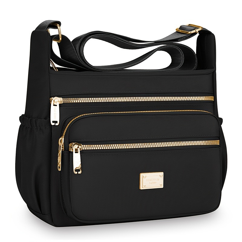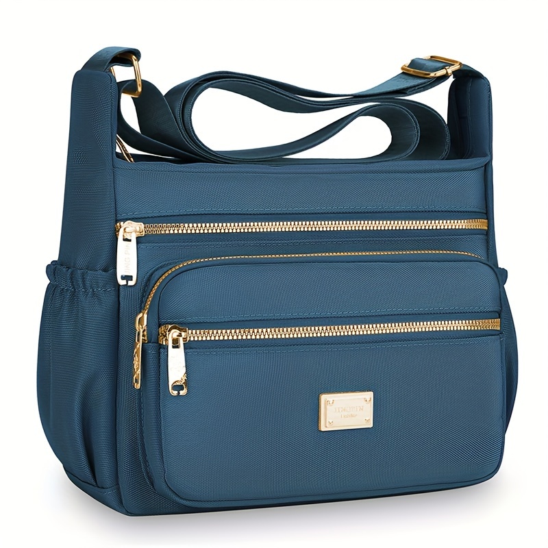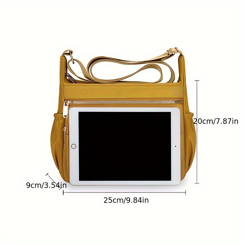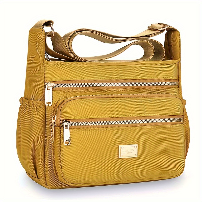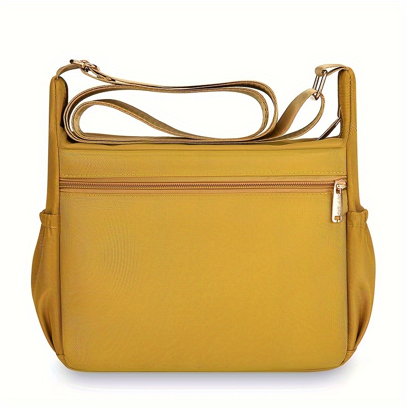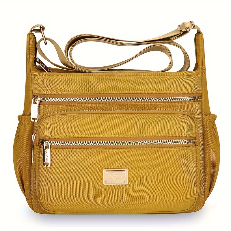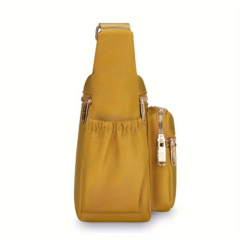 Bandolera Ligera de Nylon Compuesto de Alta Calidad para Mujer con Correa Ajustable, Múltiples Compartimentos con Cremalleras y Herrajes Dorados – Bolso Elegante Amarillo Mostaza para Uso Diario, Bolso de Hombro Versátil para Viajes | Cierre Duradero con Cremallera, Bandulera Pequeña