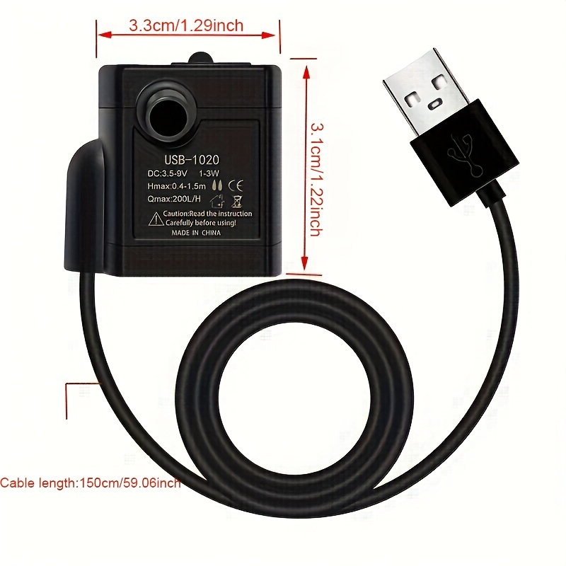 Bomba de agua sumergible alimentada por USB, Mini alimentador para mascotas y bomba de circulación para acuarios, Material plástico, con cable USB, para gatos y perros, Bomba para fuente de agua para mascotas, sin batería