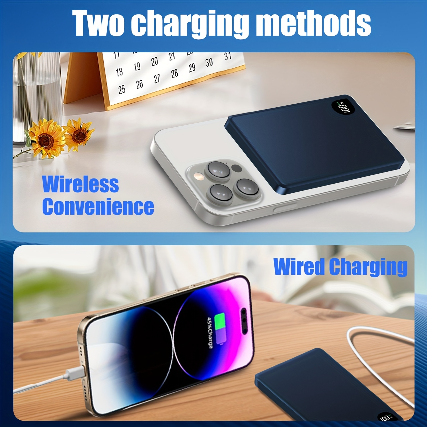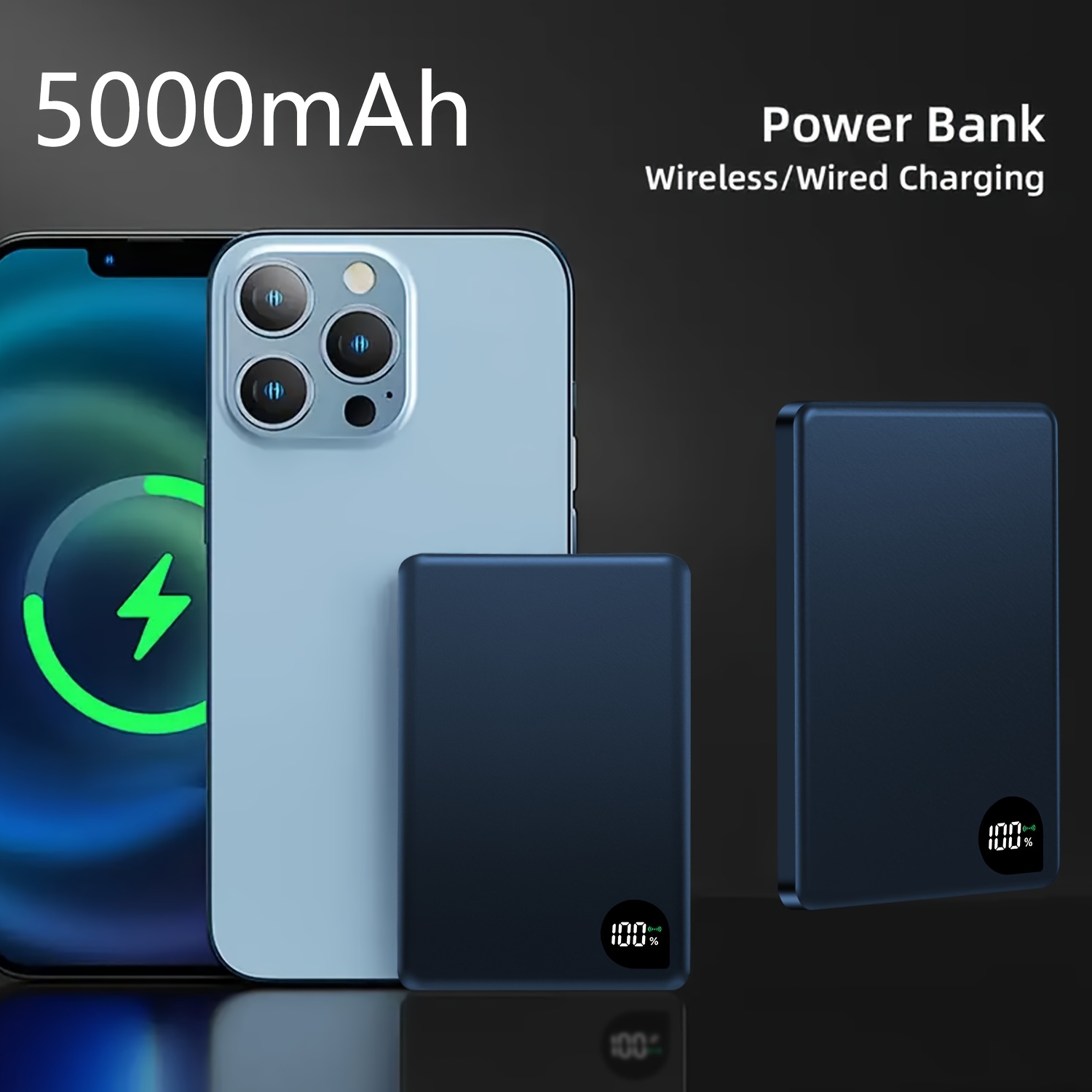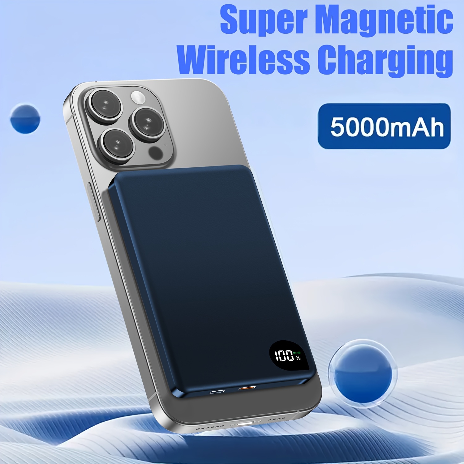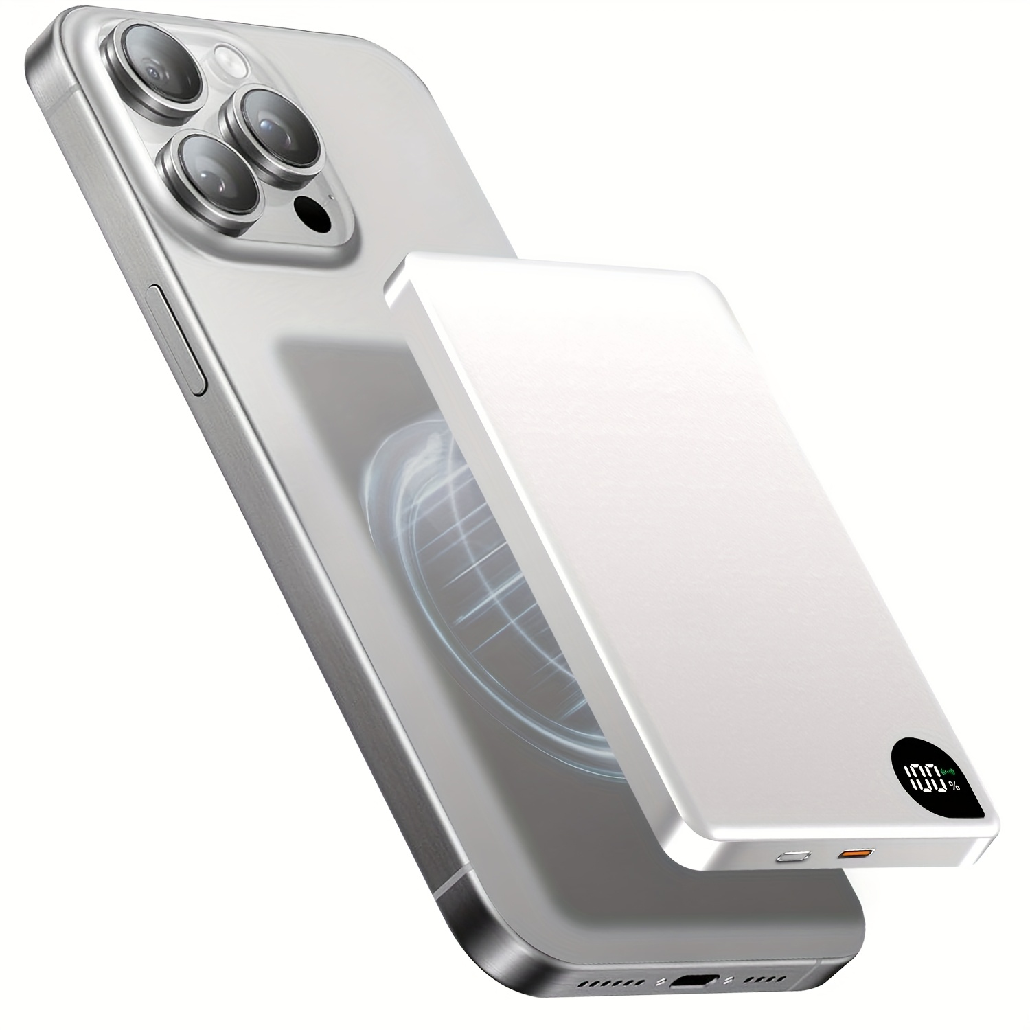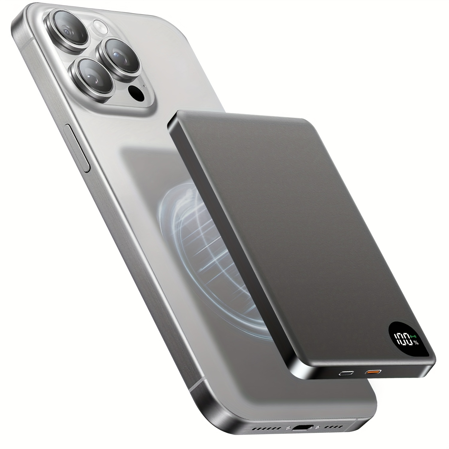 Cargador Portátil Ultra Delgado para iPhone, Batería Externa de 5000mAh con Carga Inalámbrica Magnética PD15W, Compatible con Apple iPhone 17 Pro/16 Max/13/12 y Teléfonos Android, Diseño de Aluminio con Puerto Tipo-C, Fuente de Energía de Respaldo Portátil para Viajes al Aire Libre, Fuente de