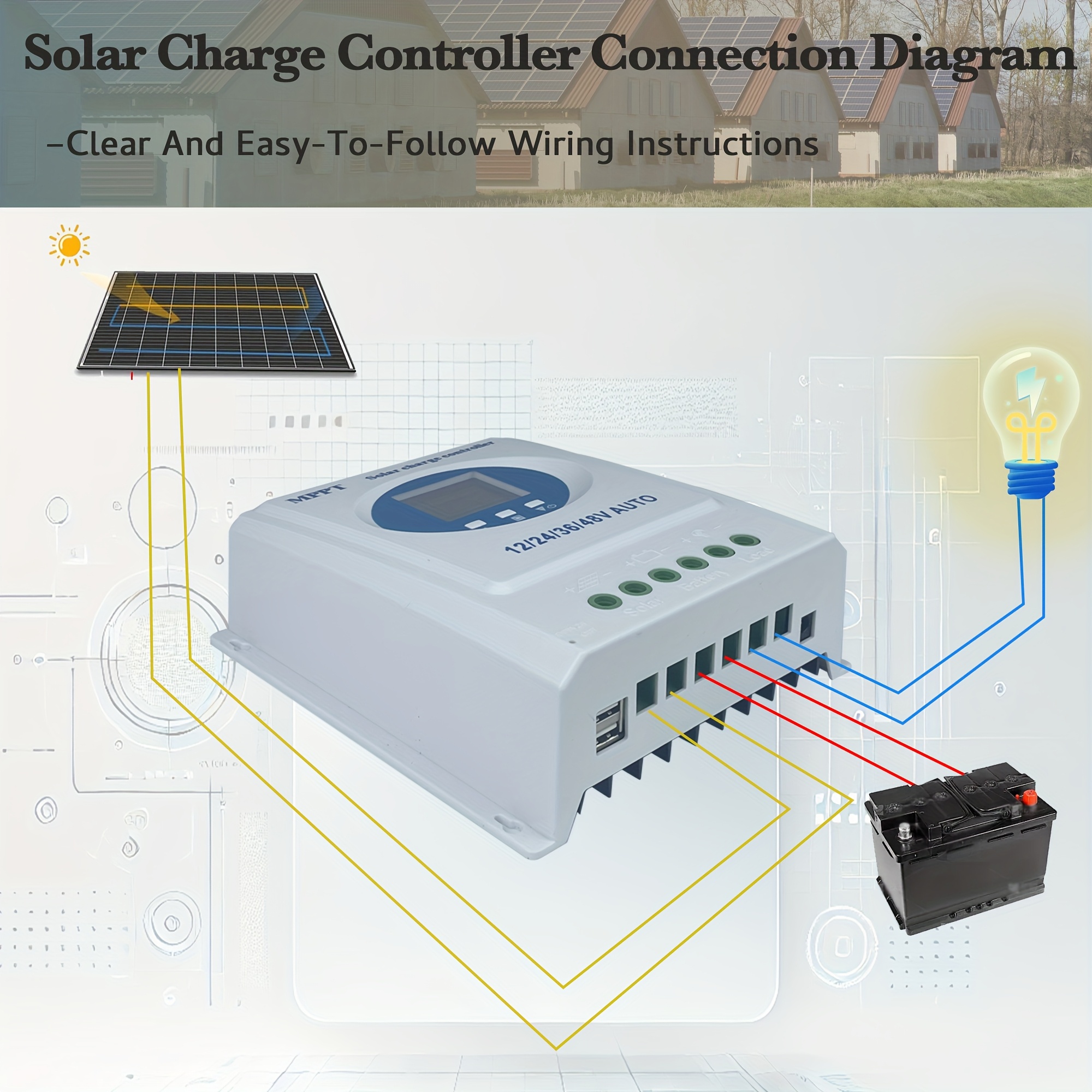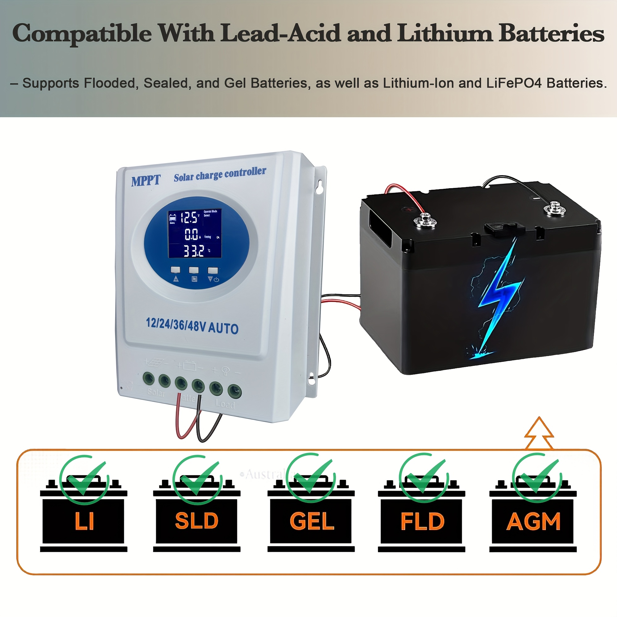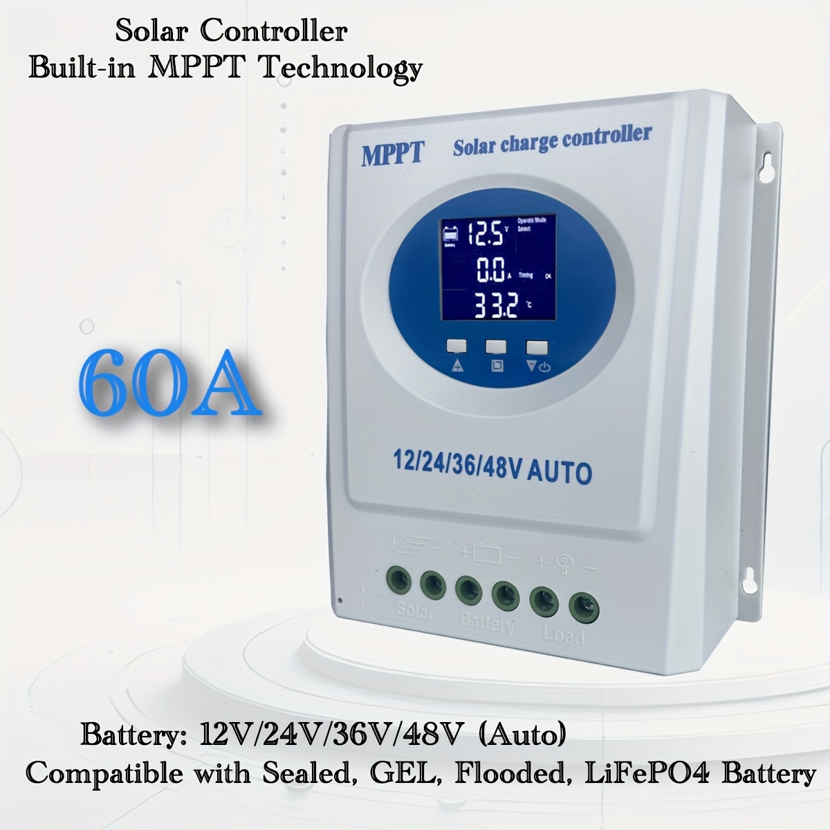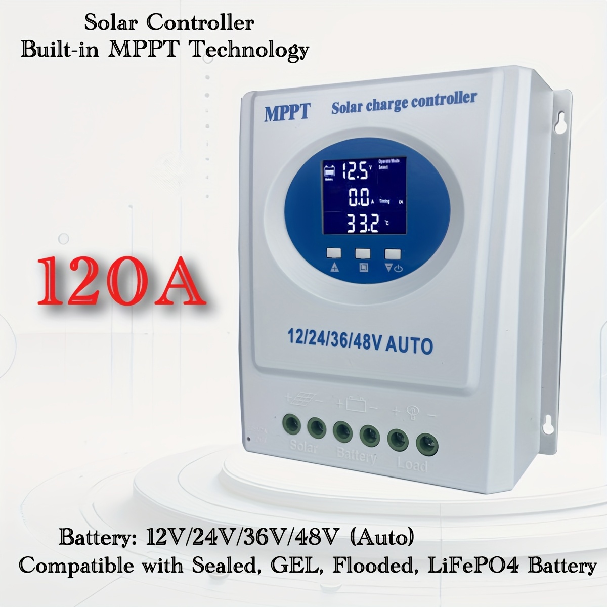 Controlador de Carga Solar MPPT de 120A 60A – Compatible con 12V/24V/36V/48V Automáticamente, con 7 Modos para Baterías de Plomo-Ácido/Lifepo4/Litio, Adecuado para el Hogar, RV o Sistemas Solares Off-Grid, con Puertos USB Duales y un Pantalla LCD