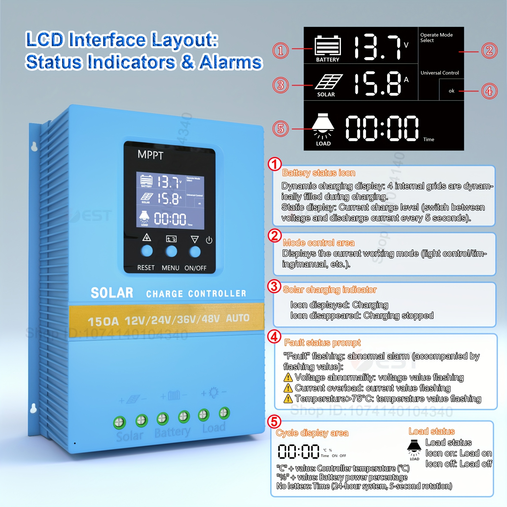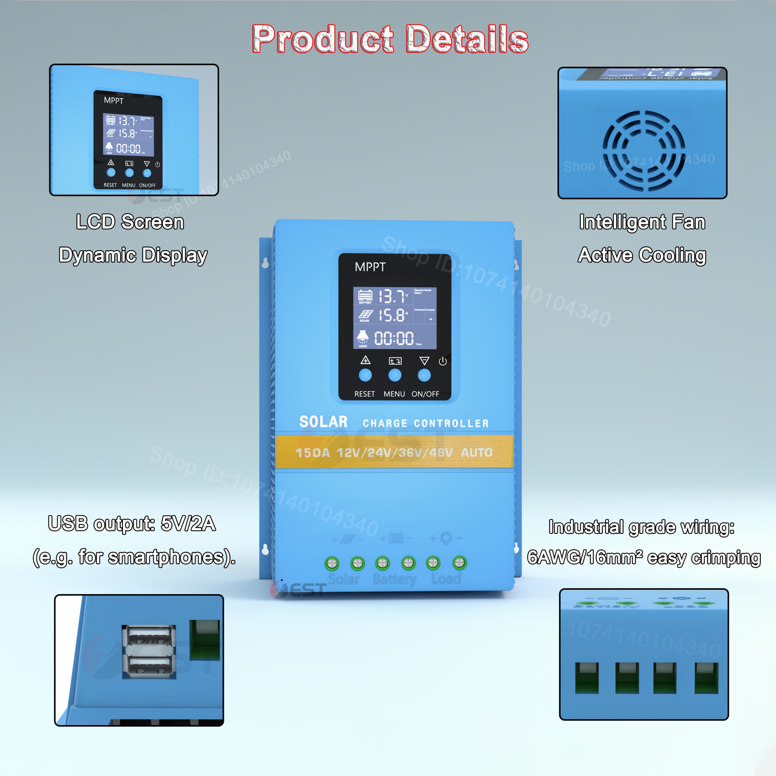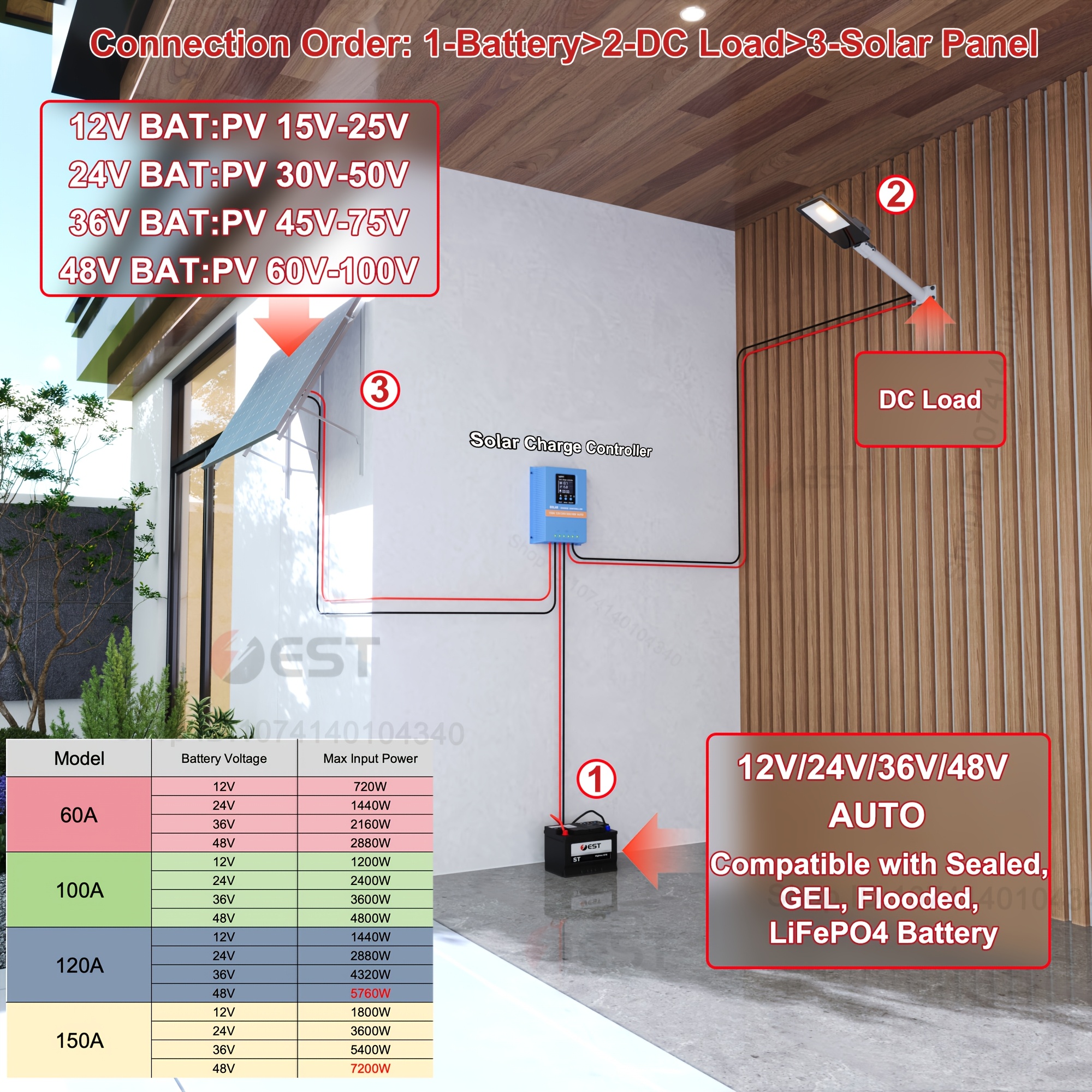 Controlador de Carga Solar MPPT de 7200W Max 150A