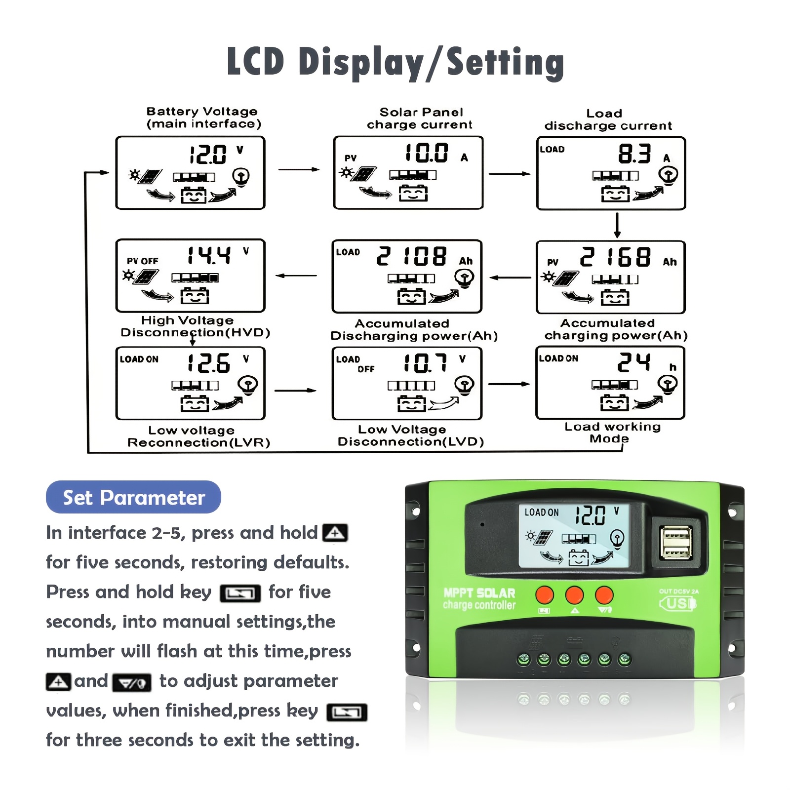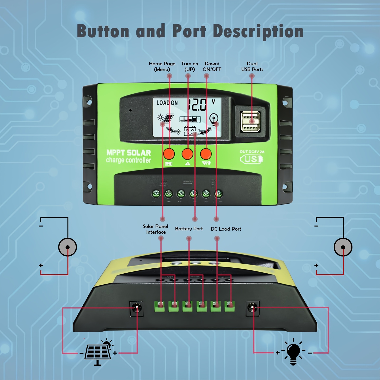 Controlador de Carga Solar Sone MPPT 12V/24V Seguimiento Automático, Tecnología MPPT con 99% Eficiencia, 4 Et