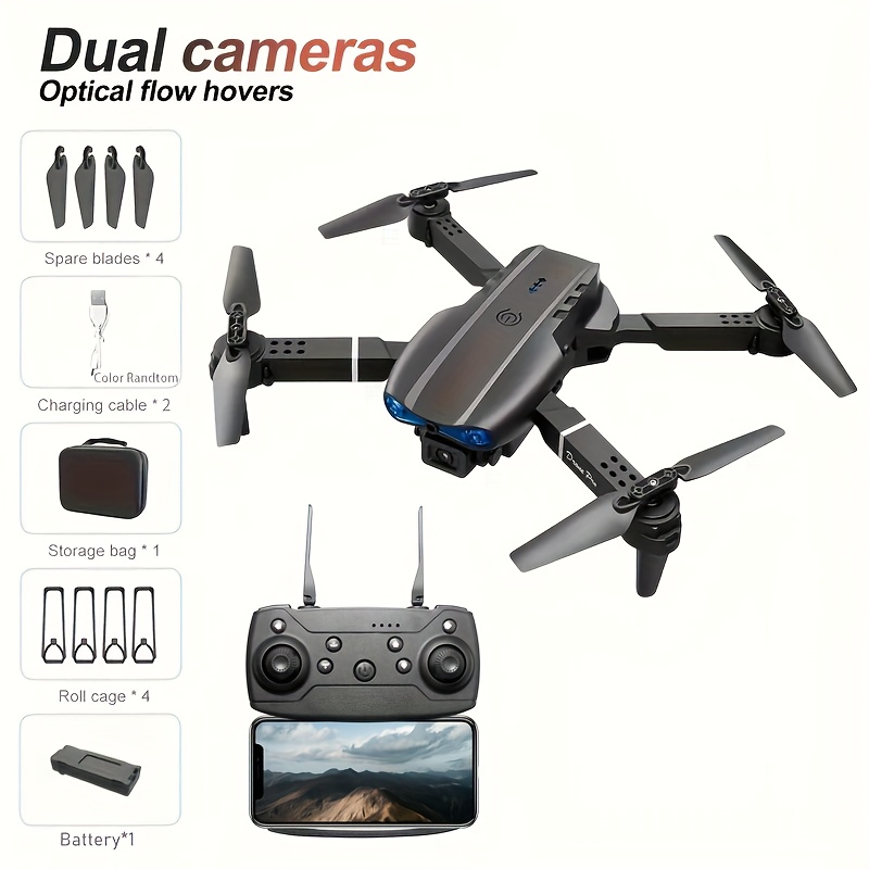 E99 Dron con Doble Cámara y Pantalla HD, Larga Duración de Batería, Carga USB, Seguimiento Inteligente y Evitación de Obstáculos – Dron Aéreo Duradero para Principiantes, Conectividad Wi-Fi, Control Remoto, Material ABS, Dron de Alta Calidad