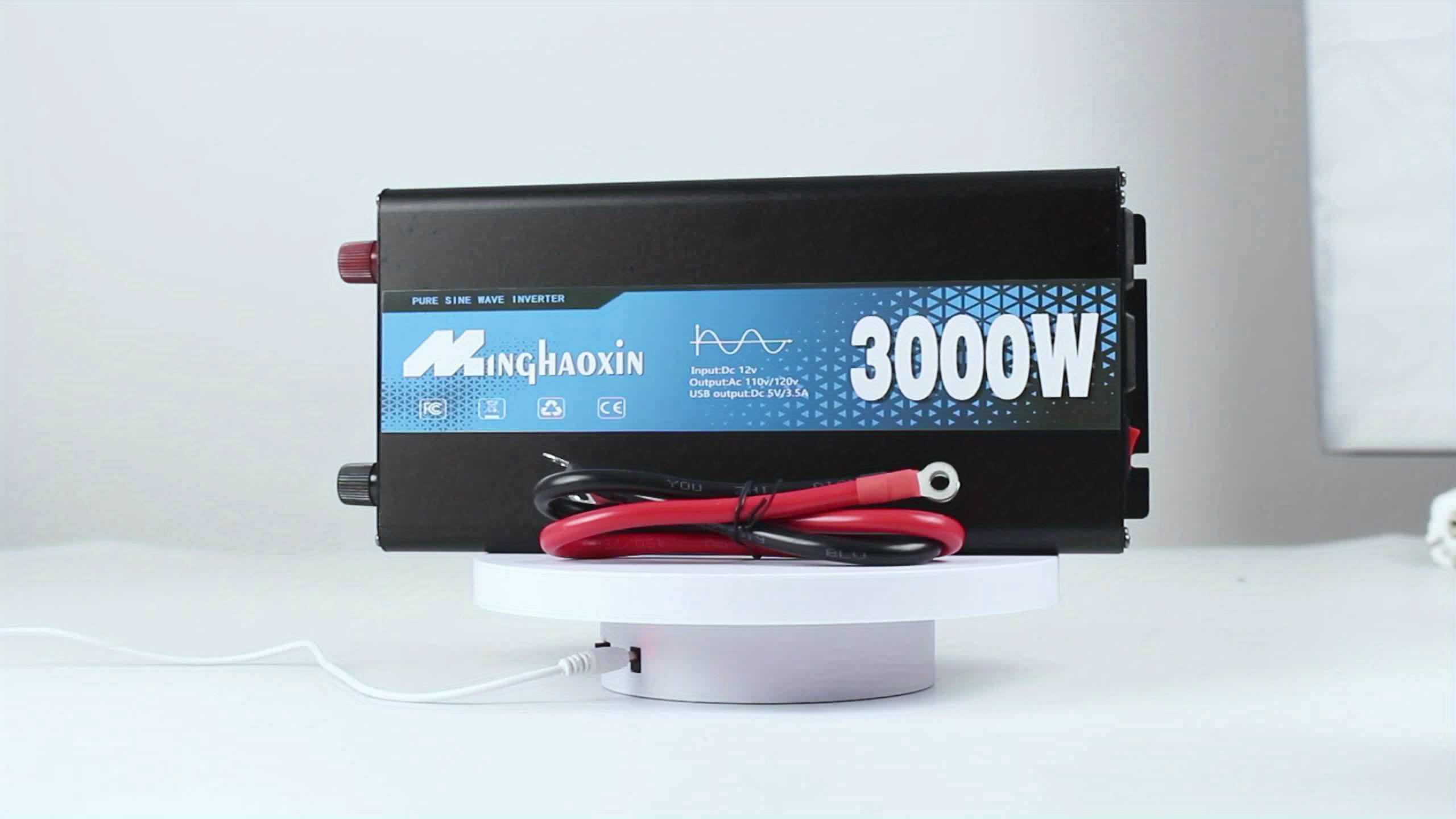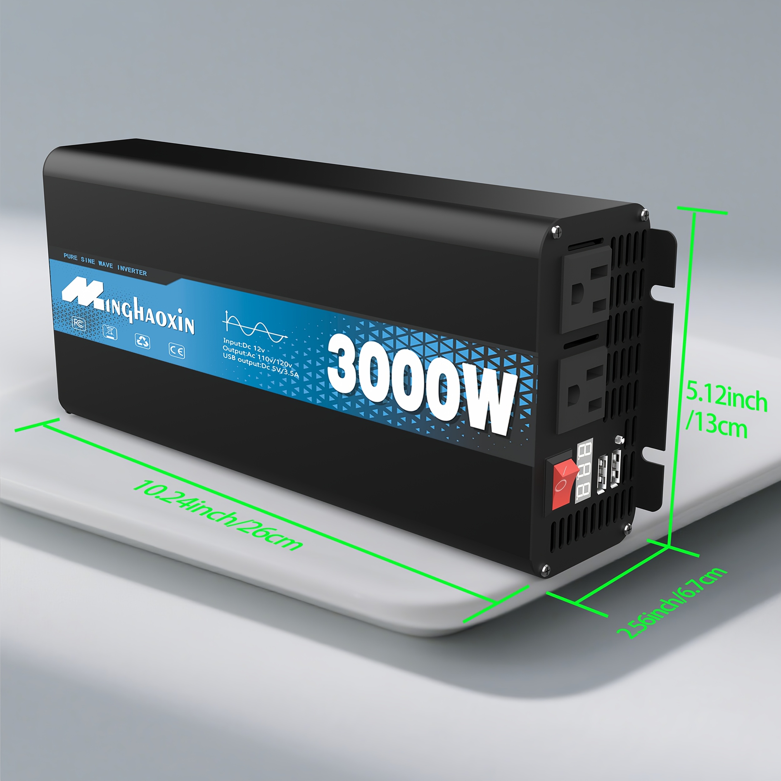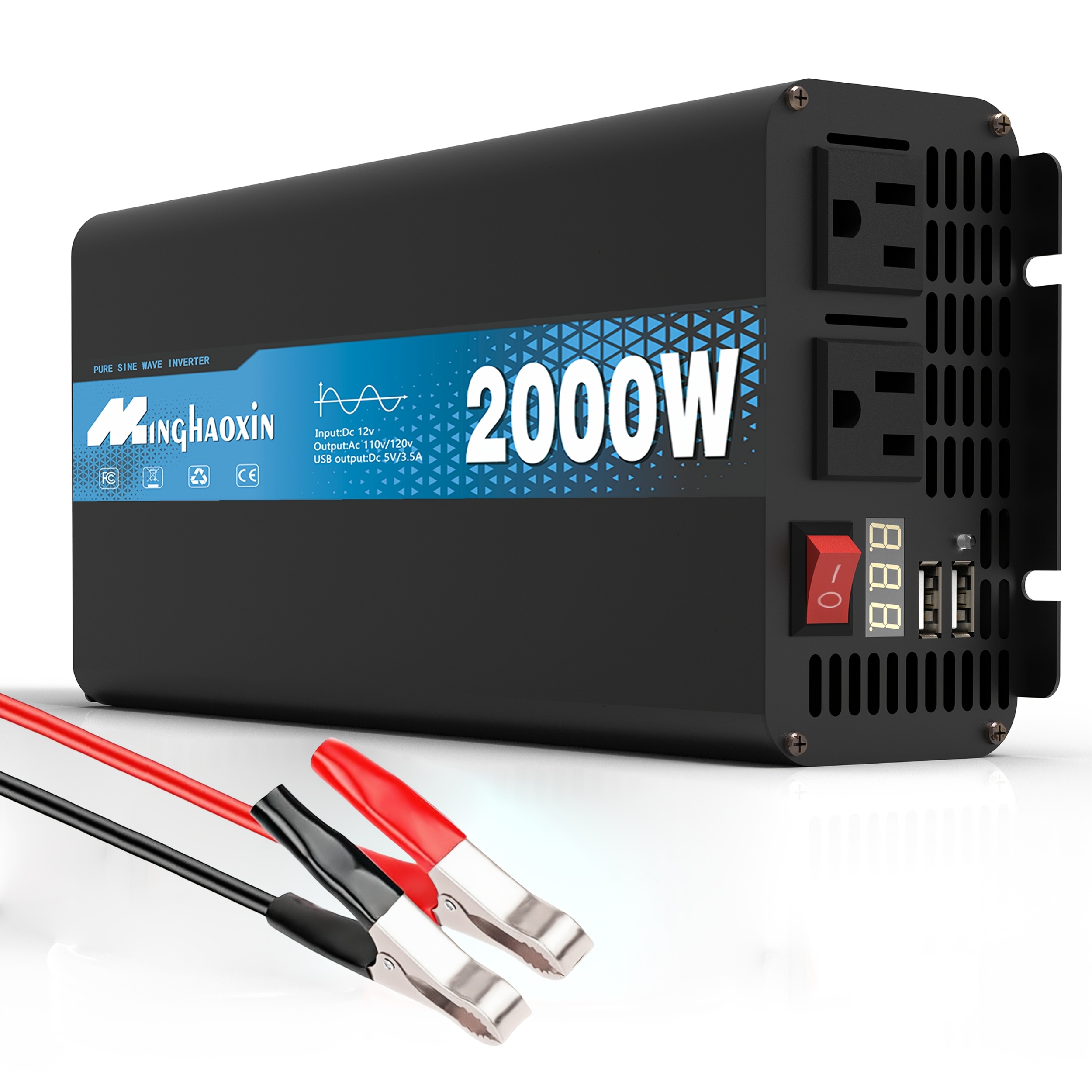 Inversor de onda sinusoidal pura 3000W/2000W/1000W, salida AC de 12V a 110V/120V, carga rápida dual USB, para autos, RVs, barcos, sistemas solares fuera de red, suministro de energía de emergencia para camping, dispositivos médicos CPAP, carga de portátiles con protección contra sobrecarga, enchufe
