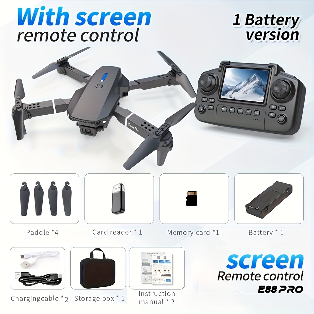 Nuevo Dron E88 PRO, Versión Mejorada con Control Remoto y Doble Cámara, Equipado con Cuatro Motores de Alta Velocidad, Vuelo Estable, Fácil Operación, Ideal para Principiantes, Regalo Perfecto para las Fiestas, Dron Ultra Mini, Dron Profesional K de Alta Gama, Mini Dron