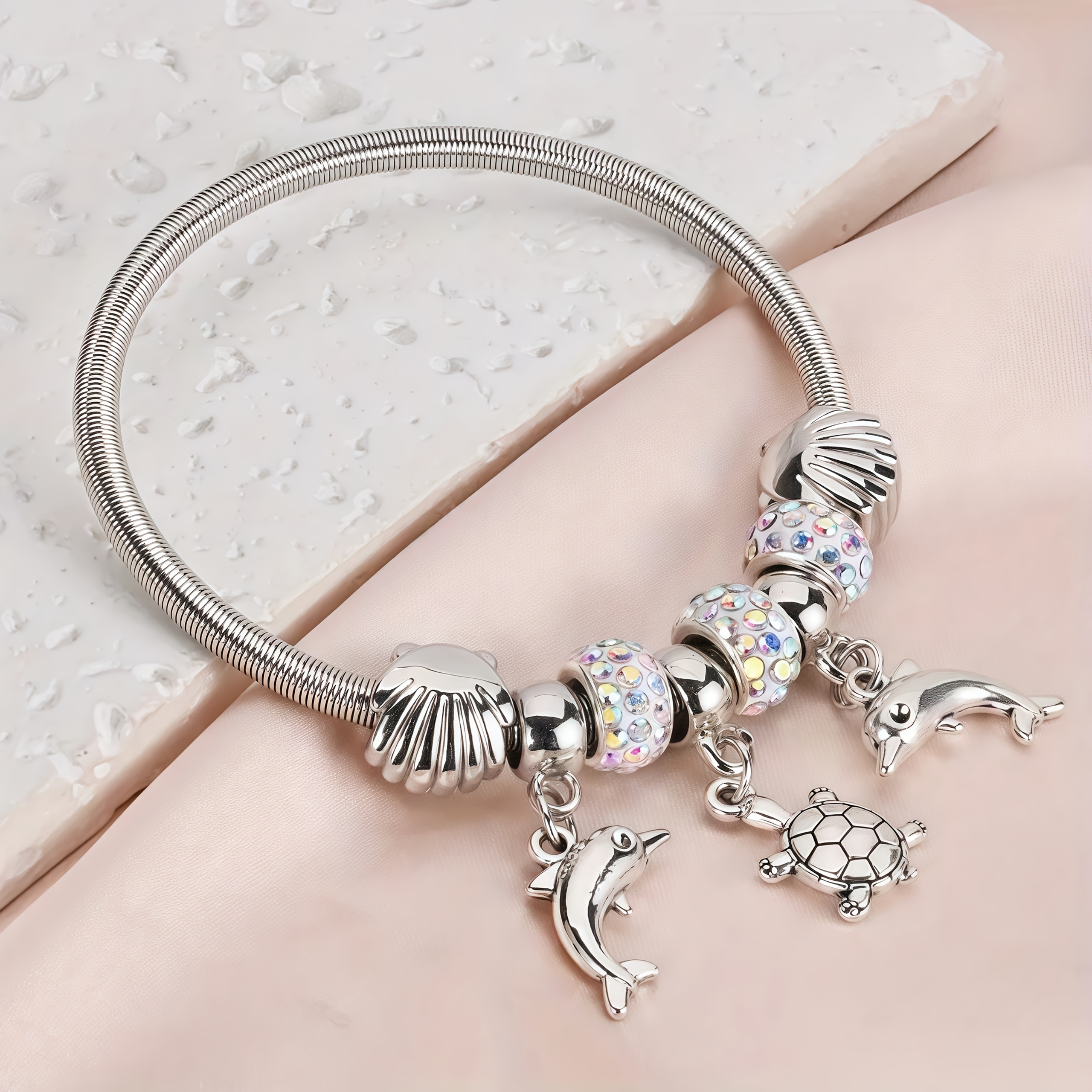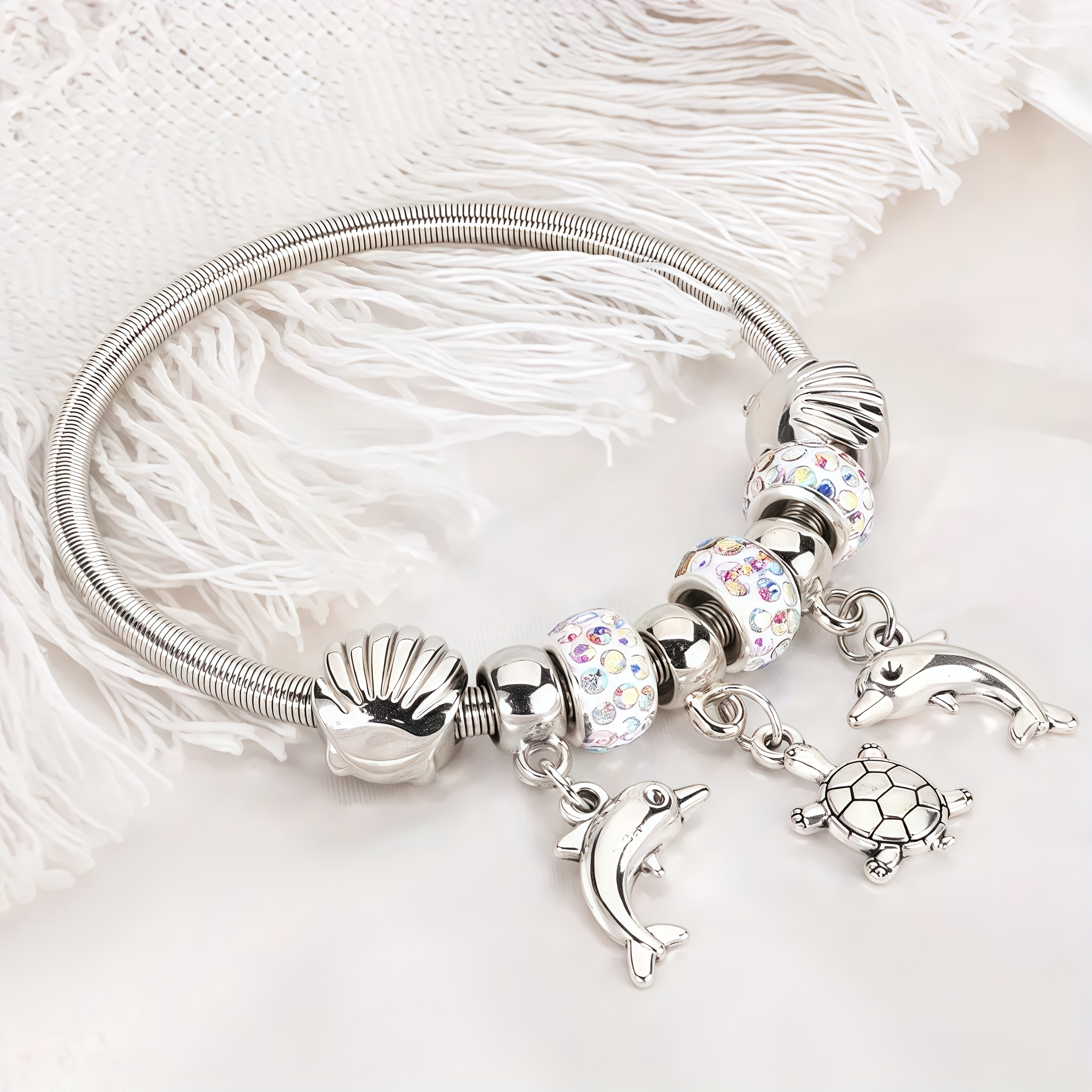 Pulsera de la amistad con temática marina, con dijes de delfín y tortuga