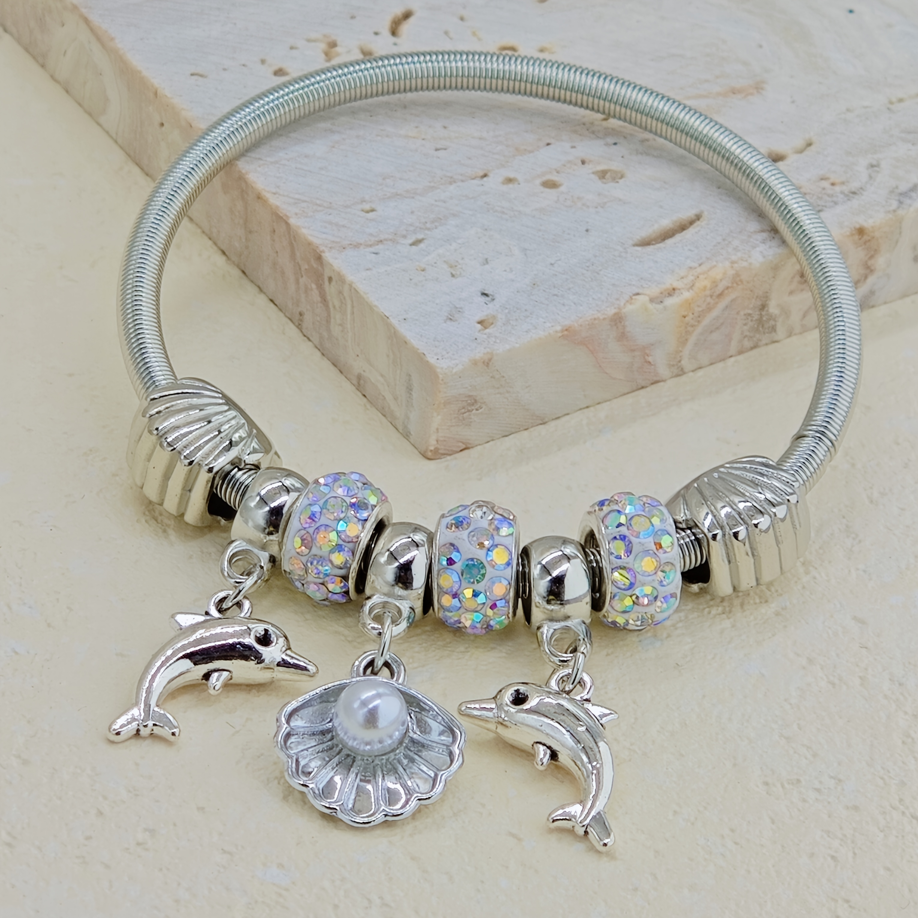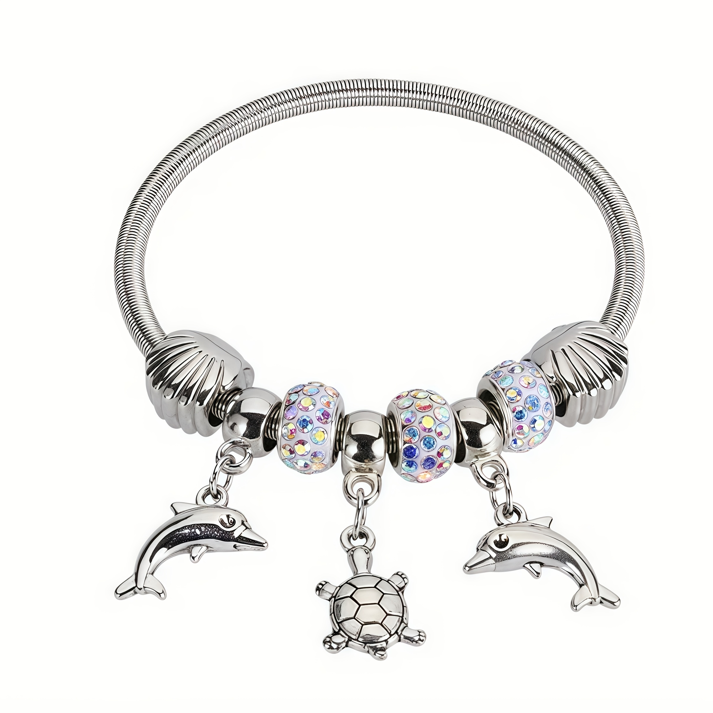 Pulsera de la amistad con temática marina, con dijes de delfín y tortuga, adornada con diamantes de imitación y decorada con cuentas de arcilla, perfecta para regalar a tus seres queridos y un accesorio ideal para las fiestas.