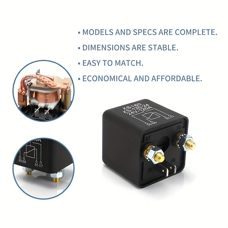 Relé de 100A, Relé Automotriz, Ideal para Diversas Series de Automóviles, Camionetas, RVs y Vehículos de Construcción, Sin Batería, Vehículo de Carretera Alimentado por Batería, Relé de Arranque de Solenoide para Coche, Arrancadores de Coche para Motores Iniciales Pequeños