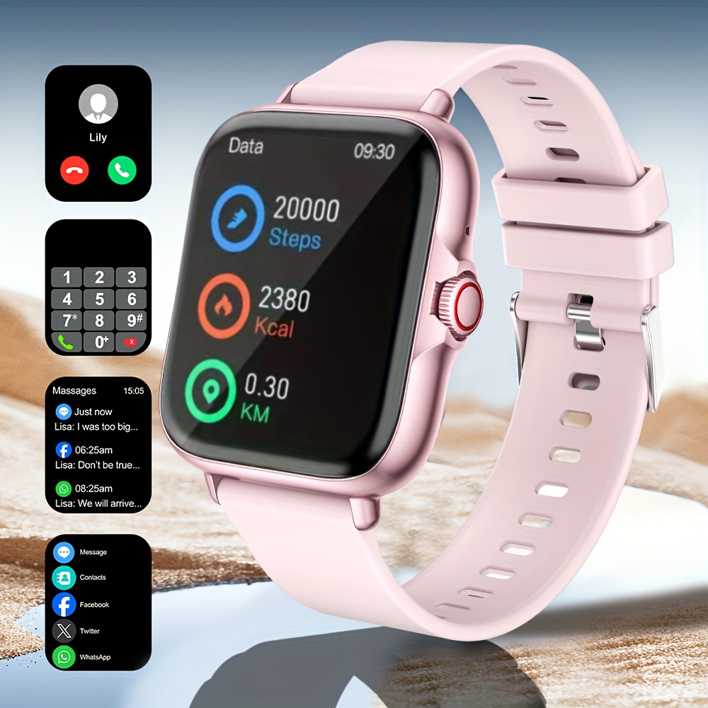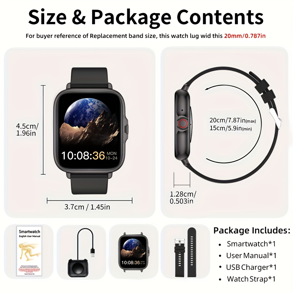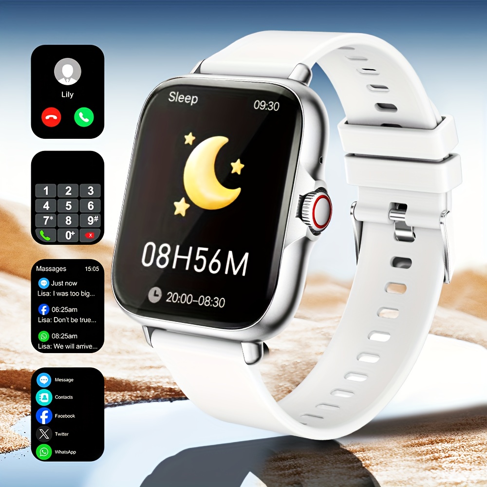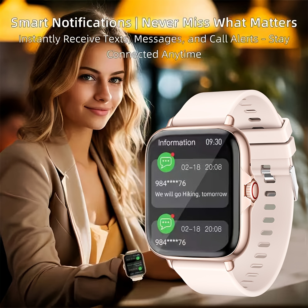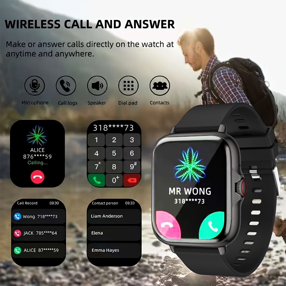 Reloj Inteligente HD de Alta Definición con Pantalla Táctil Completa para Hombres y Mujeres – Llamadas Inalámbricas/Mensajes Textuales/Múltiples Modos Deportivos/Control Remoto a Cámaras/Rastreador Fitness, Compatible con Android e iPhone, Recarga USB, Carcasa en Aleación / Correa Silicona / Banda