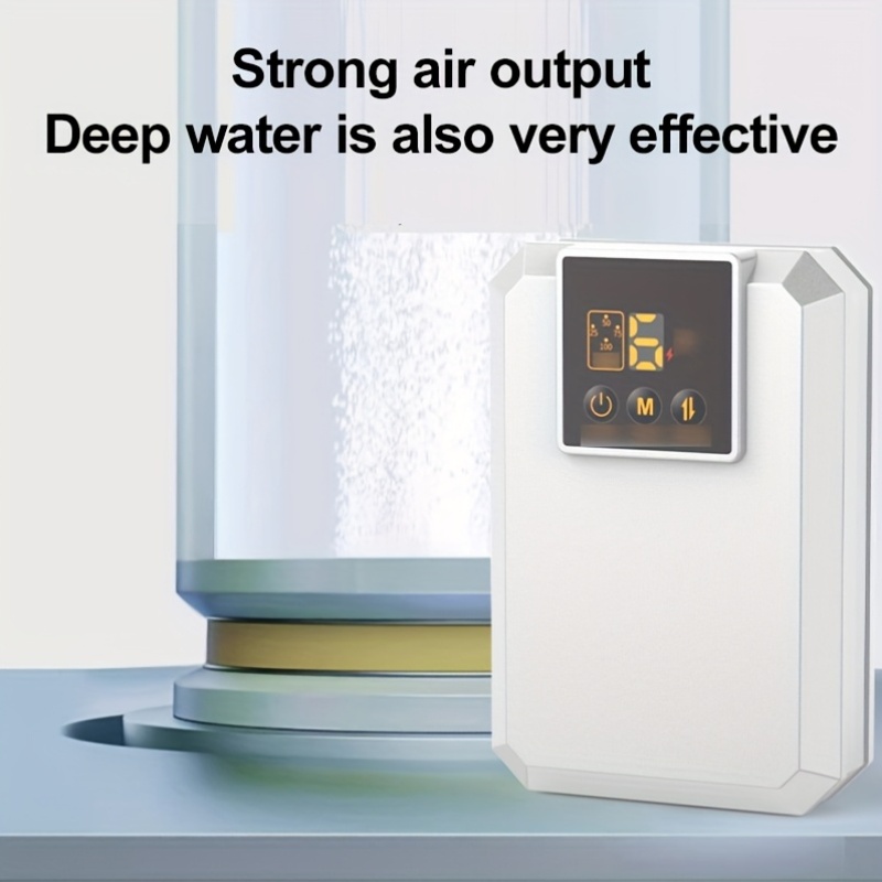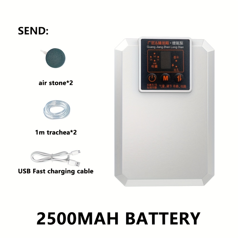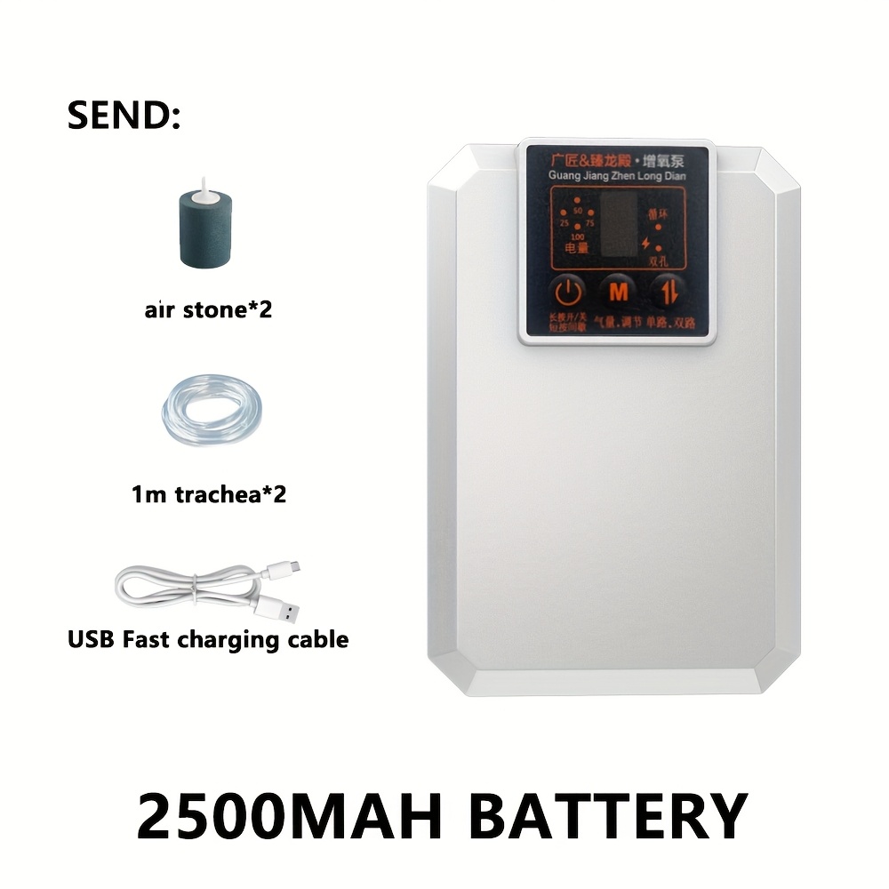Una bomba de oxígeno de alta capacidad con / batería, ideal para uso doméstico, pesca al aire libre y piscicultura. Este dispositivo portátil cuenta con un modo de carga USB para acuarios.